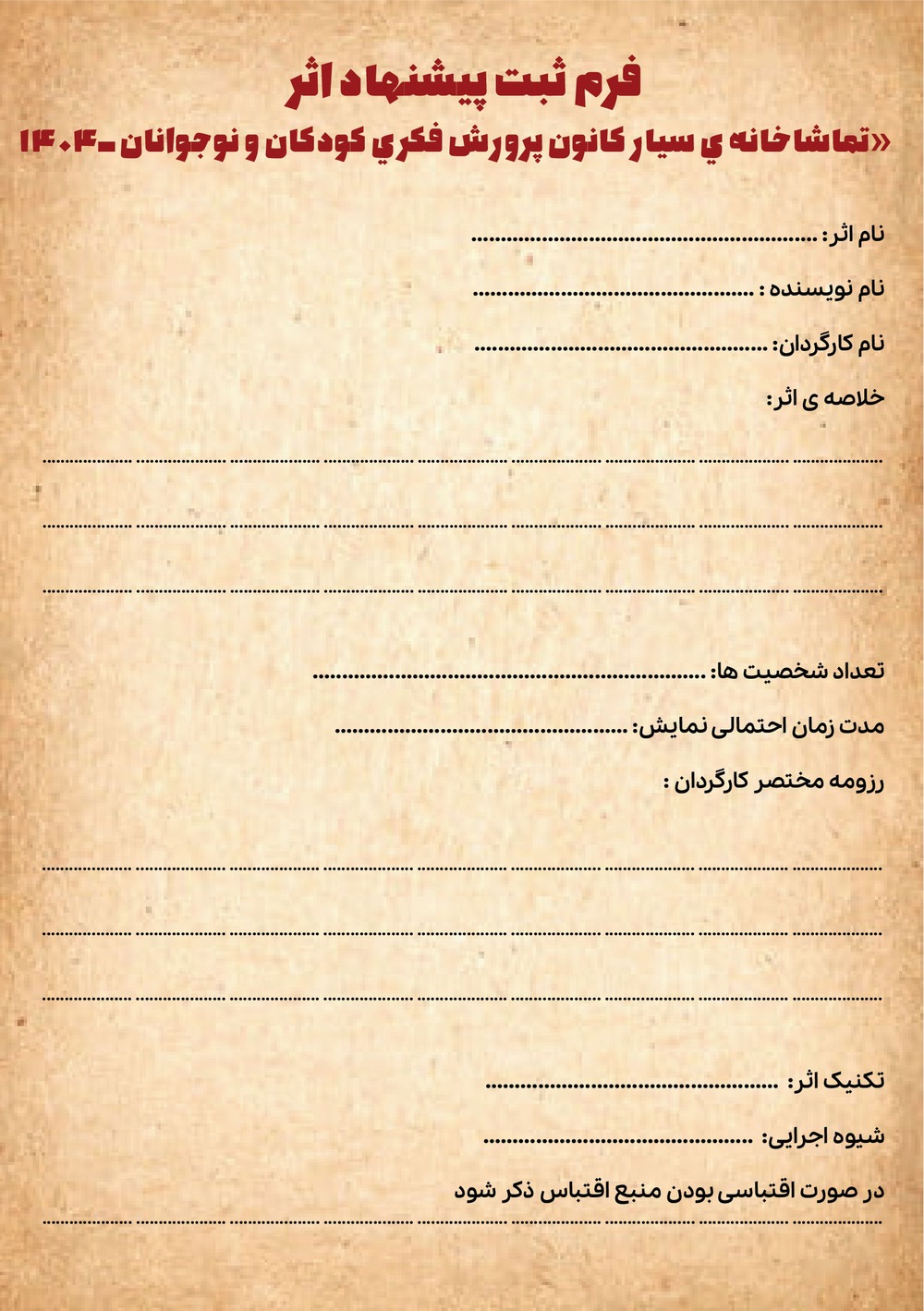 فرم ثبت پیشنهاد اثر